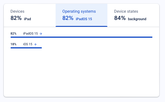 Firebase also provides a lot of valuable associated data. For example, this crash is only happening on iOS 15: