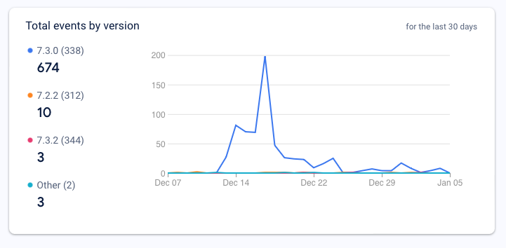 But we need some way to confirm if our fix helped or not. Firebase can provide valuable information about that. The following graph is an example of an issue that was fixed and confirmed by production data:
